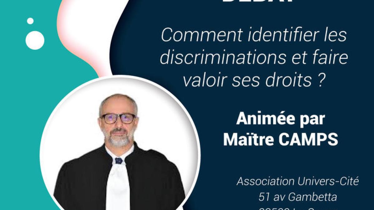 CONFÉRENCE DÉBAT : « comment lutter efficacement contre les discriminations ? » dans les locaux de l’association de 18H00 à 20h00. Maître Philippe Camps, avocat au barreau de Toulon et élu au conseil de l’Ordre, nous expliquera ce qu’est une situation discriminante et comment faire valoir ses droits. D’autres personnes et entreprises que vous découvrirez sur place interviendront.