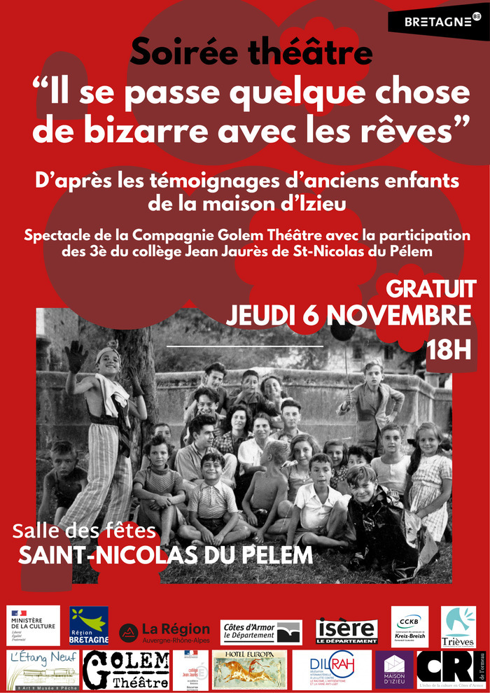 Ce sont des histoires d’enfants et de jeunes adolescents jetés dans la tourmente de la guerre. Utilisée comme sources historiques, cette matière d’une richesse complexe restait finalement assez peu mise en valeur. Les responsables du Mémorial d’Izieu ont confié à Michal Laznovsky et Frederika Smetana cinq témoignages qui retracent les parcours d’enfants d'origine étrangère ayant connu l’exil et la déportation à travers l’Europe. Ils ont gardé des souvenirs d’enfance précis, des anecdotes de vie, de famille. Partant de la matière historique du témoignage, cette forme scénique prolonge le travail d’histoire et de mémoire en l’ouvrant à d’autres publics, d’autres réceptions. Elle met ainsi en acte la transmission et crée un espace essentiel de rencontre.