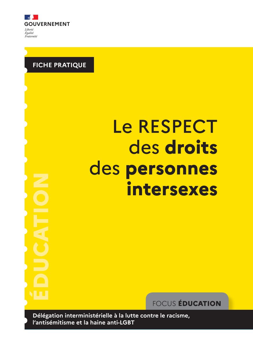 La DILCRAH a élaboré trois fiches pratiques destinés à faire connaître, faire respecter et faire valoir les droits des personnes intersexes dans les champs de l'éducation, de la santé et du sport.